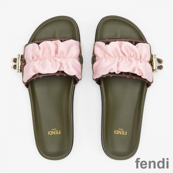 Fendi Vertigo Slides Women FF Motif Satin Pink