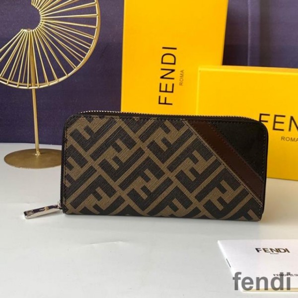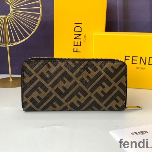 Fendi Zip Around Wallet In FF Motif Fabric Brown/Coffee