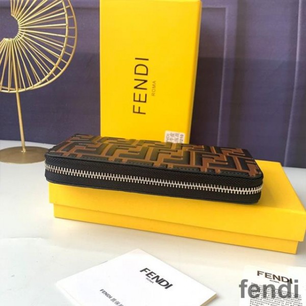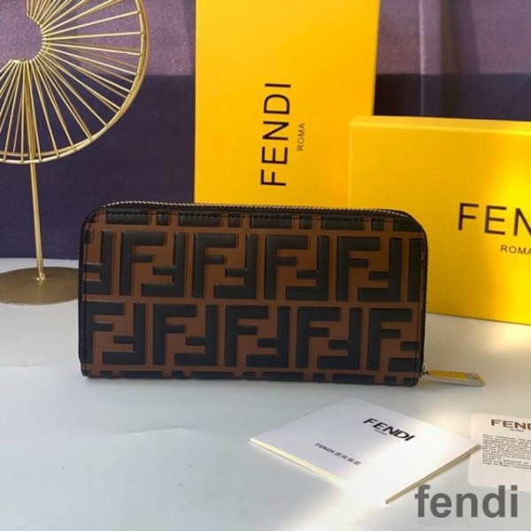 Fendi Zip Around Wallet In FF Motif Nappa Leather Coffee